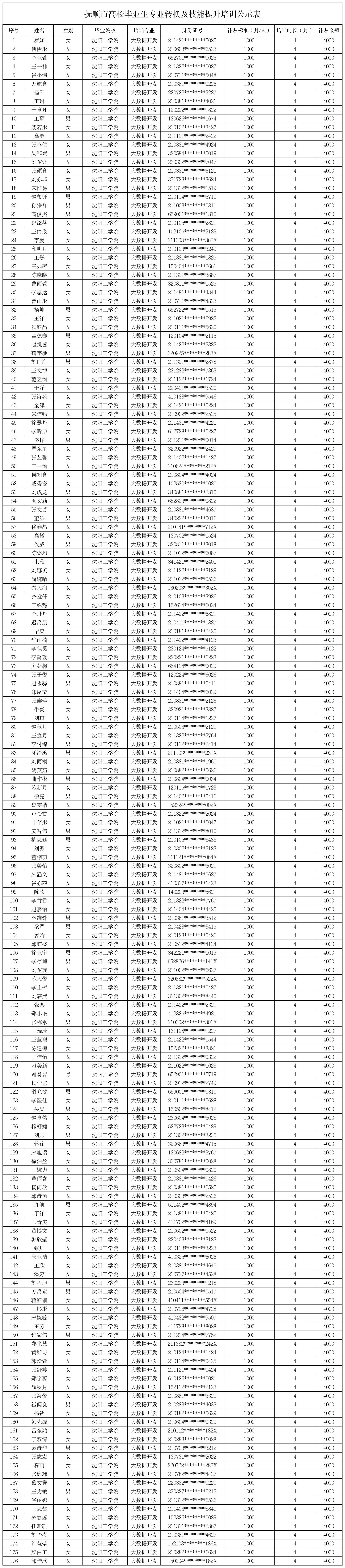抚顺市高校毕业生专业转换及技能提升培训学员公示表
