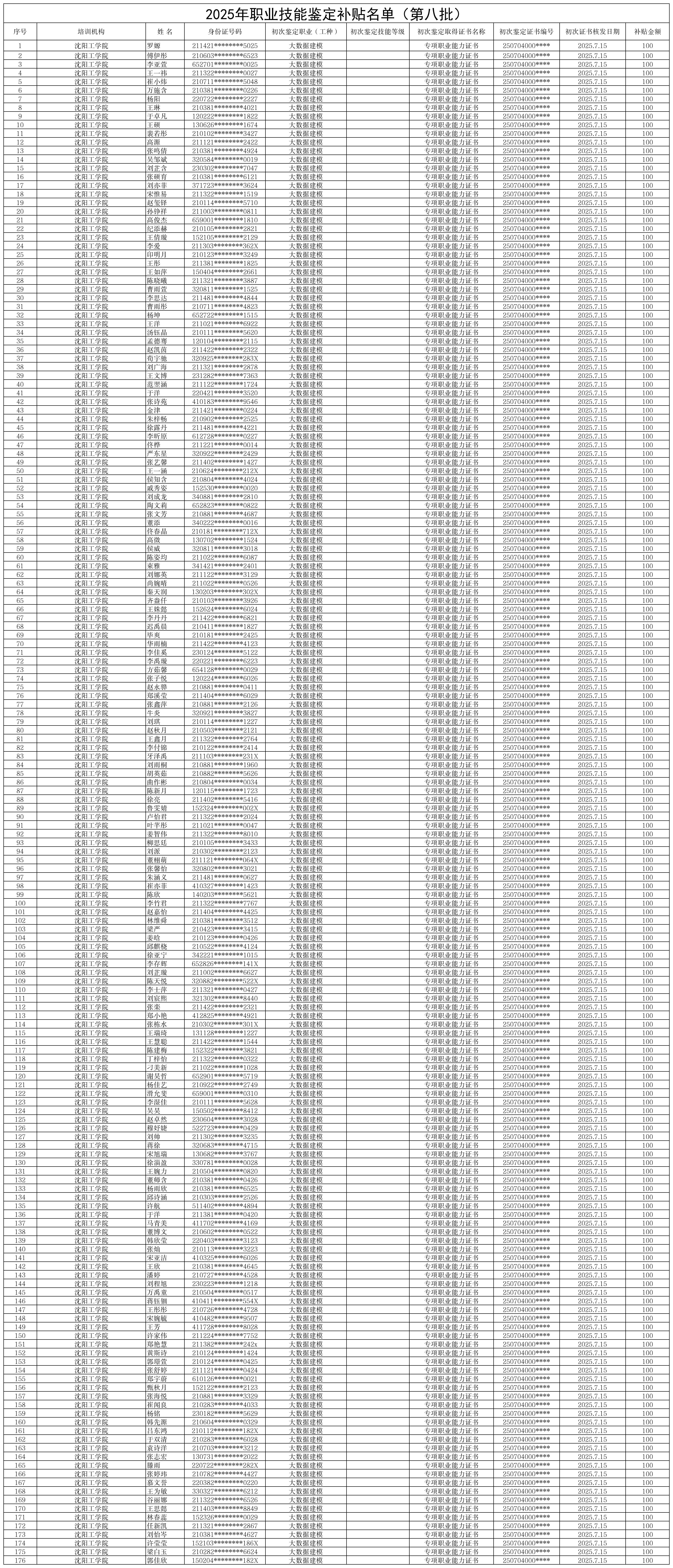 2025年11月用人单位吸纳高校毕业生就业社会保险补贴 公示人员名单